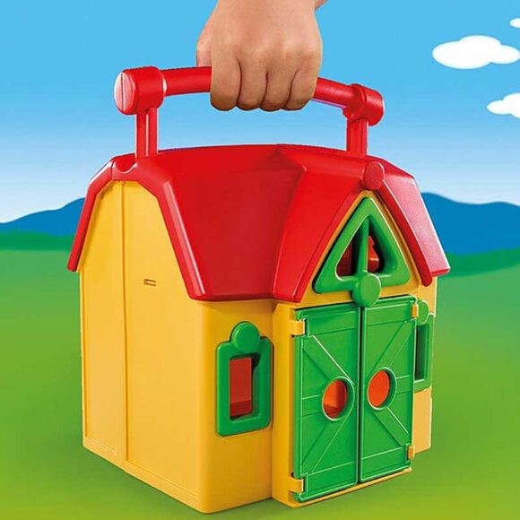 “Get ready to work on the farm with the Playmobil 6962 My Take Along Farm. With a bright and colorful design and large rounded pieces, this PLAYMOBIL 1.2.3. set is ideal for toddlers. Feed the animals and store all supplies in the loft. Pay careful attention to which shapes fit in the holes! When playtime is over, store all the pieces inside the farm, close up and grab the carrying handle to go wherever adventure leads you. “
